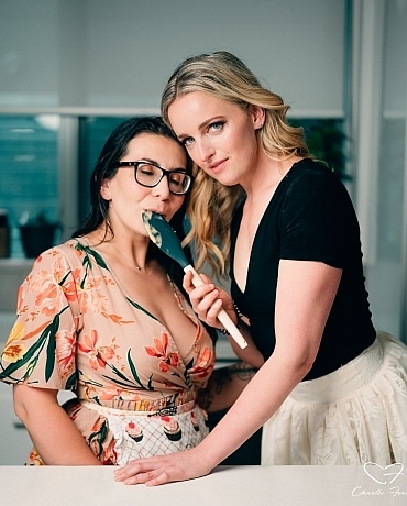 Chasey is in the kitchen baking and nothing is going to distract her. Not even Charlie. Watch Charlie caress Chasey’s neck and suck her beautiful Greek nipples before Charlie is fucked with a rolling pin. All the while Chasey continues to bake unfazed. Charlie finally climbs onto the kitchen bench and cums with Chasey between her legs licking cake batter off her thighs. A unique and cinematic exploration of the Free Use genre. Free Use is not often explored out of fear of the difficulty in showing consent; this film manages to walk the line very eloquently and you are left feeling a very intimate connection between Charlie and Chasey.