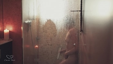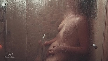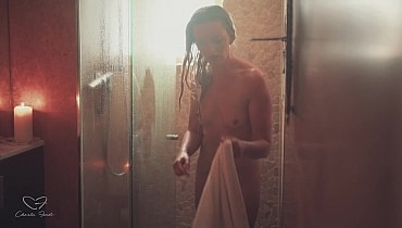 It has been a long day. Charlie climbs into the shower, tired. She presses her body up against the cold tiles in the shower and feels the rain of water on her skin. Washing herself, she starts to let her hands wander to her neck, her breasts and finally her pussy. Watch her wet body arch with her touch, watch her tease herself until she finally cums quietly and peacefully - just what she needed at the end of that long day.