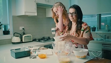 Chasey is in the kitchen baking and nothing is going to distract her. Not even Charlie. Watch Charlie caress Chasey’s neck and suck her beautiful Greek nipples before Charlie is fucked with a rolling pin. All the while Chasey continues to bake unfazed. Charlie finally climbs onto the kitchen bench and cums with Chasey between her legs licking cake batter off her thighs. A unique and cinematic exploration of the Free Use genre. Free Use is not often explored out of fear of the difficulty in showing consent; this film manages to walk the line very eloquently and you are left feeling a very intimate connection between Charlie and Chasey.