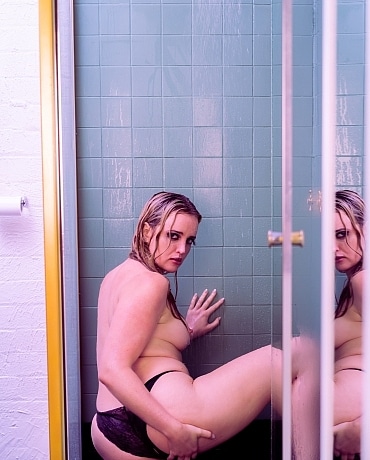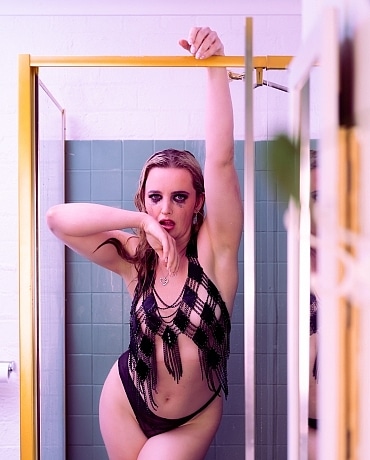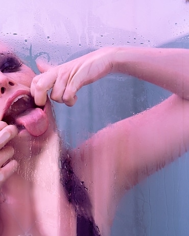 Charlie gets steamy this week in the shower. She presses her body against the glass, licking the water droplets from the walls, with her black makeup dripping down her pretty face.