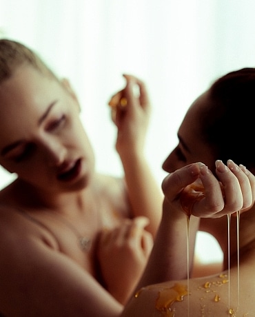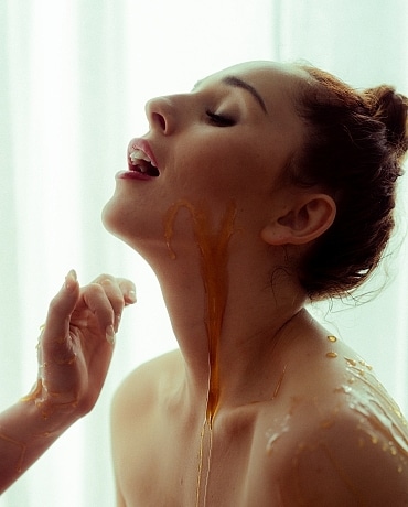 Two bodies, dripping with honey, melding together under the light of a winter sun. Nova and Charlie ooze sensuality in this incredibly beautiful and romantic glazed honey photoset.