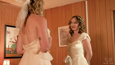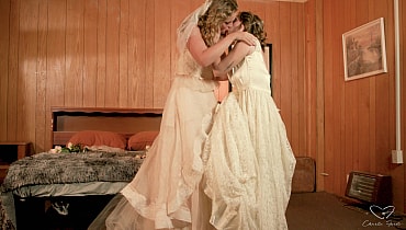Charlie and Lilly bust through the doors of their 80's motel, whispering sweet nothings to each other after eloping. They devour each other's bodies with total devotion, Lilly stuffing her whole hand into Charlie's pussy and drenching herself in Charlie's squirt.